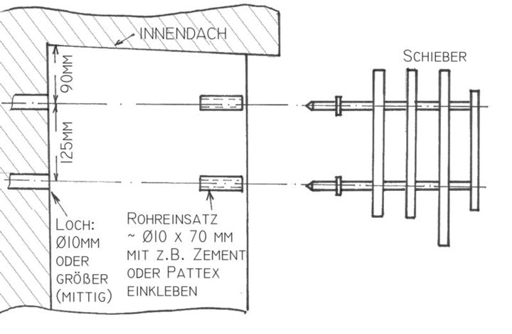 Lieferumfang: 1FW, Aufhängebügel, zwei Halteklötze, Alunägel und Bedienungsanleitung.