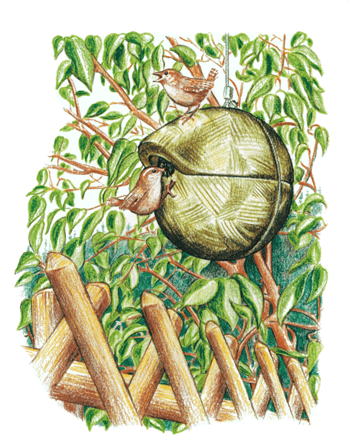 Lieferumfang: Zaunkönigkugel mit Halteseil.