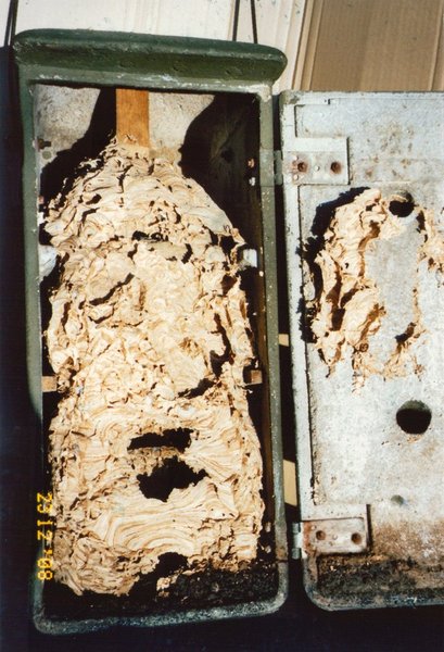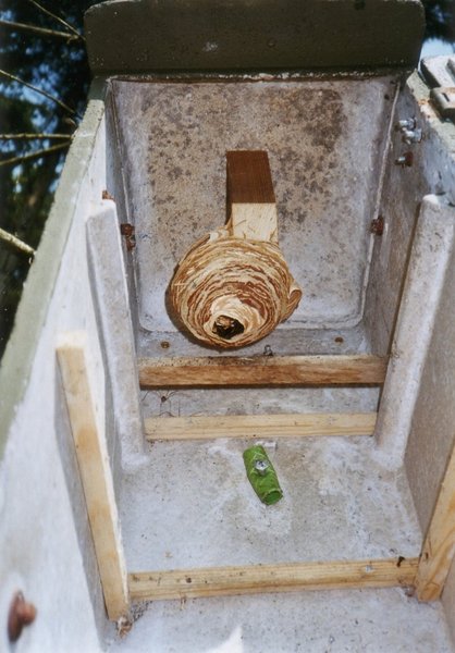 Reinigung: Jeweils ab April des darauffolgenden Jahres. Das alte Nest über den Winter hinweg ungestört lassen, da sehr gerne „Nützlinge“ darin überwintern wie Florfliegen, Hornissenkäfer usw.