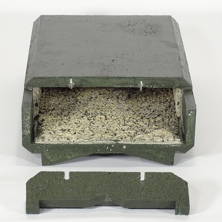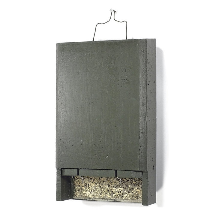 Dieser Fledermausgroßraum-Spaltenkasten ist besonders für Abendsegler und deren Wochenstuben konzipiert. Die Verschlussleiste kann einfach durch verdrehen zweier Schraubhaken geöffnet werden, so dass der gesamte Querschnitt eingesehen werden kann.