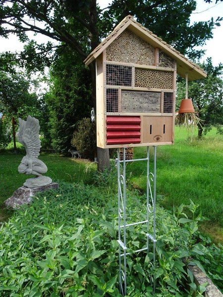 - Die ca. 40 cm langen Erdspieße werden am besten in ein kleines Betonfundament gesteckt, damit Ihr Hotel auch bei stärkerem Wind einen guten Stand hat.